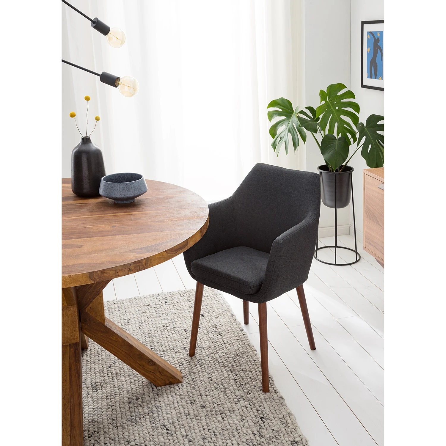 - Pieds : chêne massif, noyer teinté et huilé