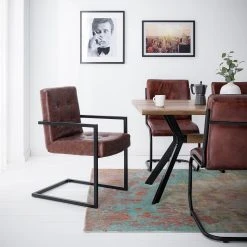 Ars manufacti Chaise cantilever – Imitation cuir / Métal – Marron / Noir