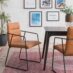 Ars manufacti Chaises à accoudoirs Bex – Imitation cuir / Métal – Marron / Noir