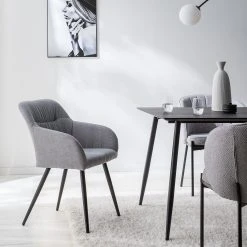 Mørteens Chaise Ă accoudoirs Senon – Tissu / Acier – Gris chinĂ© / Noir
